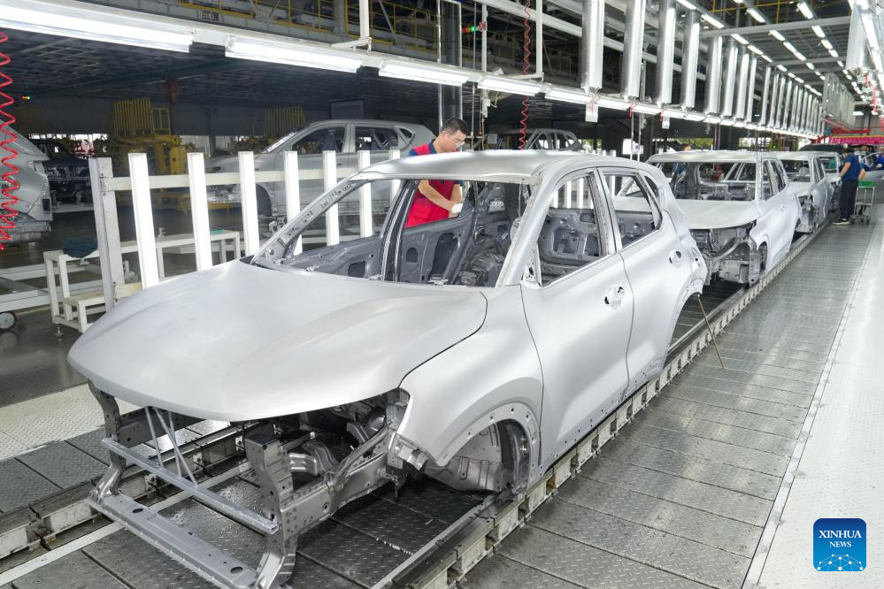 Miembros del personal trabajan en un taller de Kia en el parque industrial China-Corea del Sur en Yancheng, el 16 de octubre de 2025. (Xinhua/Li Bo).