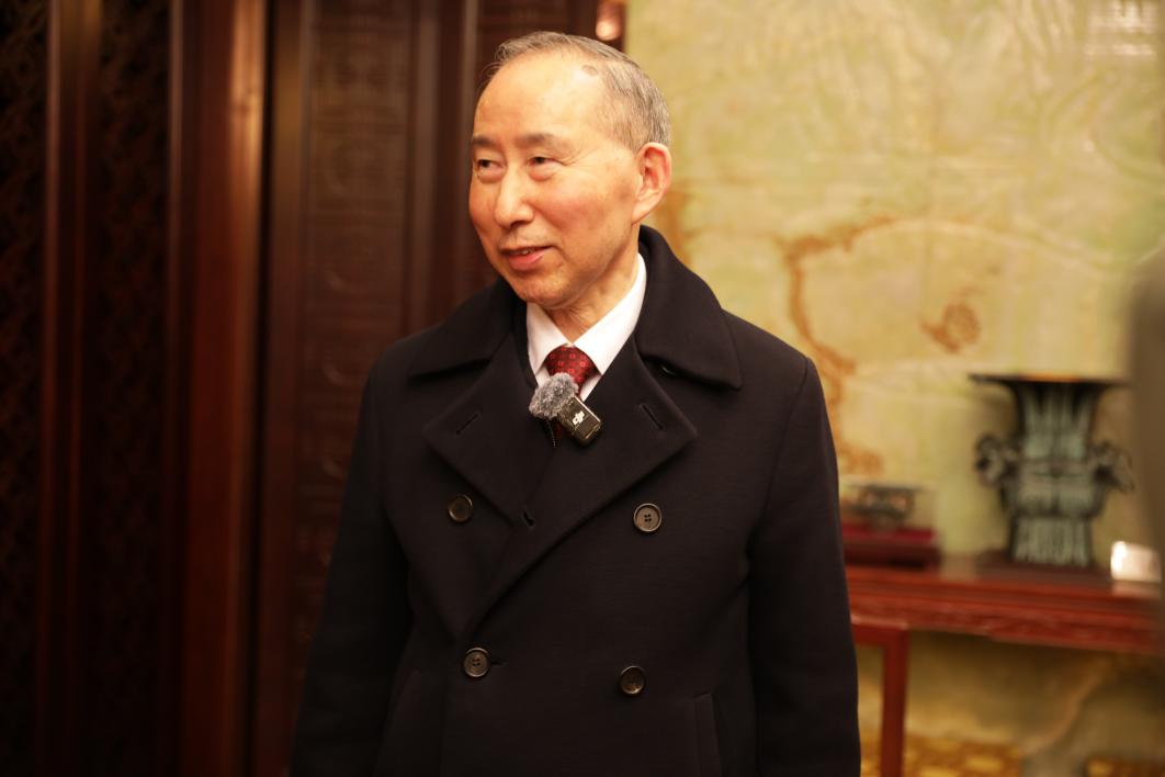 Long Yuxiang, presidente del Centro de Comunicación Cultural Internacional de China, habla con el Diario del Pueblo en línea entre bastidores en el Desfile de Moda Pakistán-China en Beijing, el 19 de octubre de 2025. (Diario del Pueblo en línea/Xu Jingwen).
