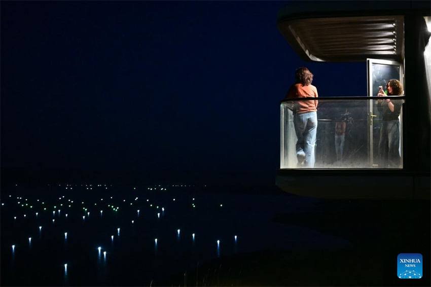 Turistas toman fotos en una casa de huéspedes en la zona de la Garganta de Longyang, en el distrito de Gonghe de la prefectura autónoma de la etnia tibetana de Hainan, provincia de Qinghai, noroeste de China, el 17 de octubre de 2025. (Xinhua/Qi Zhiyue).