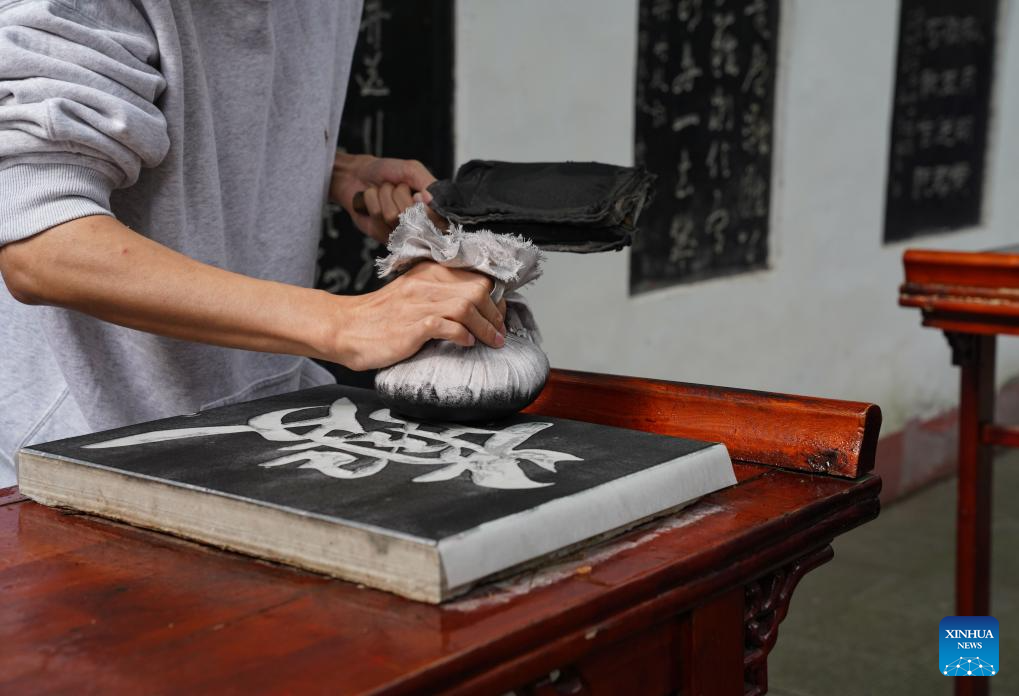 Un turista prueba las técnicas de frotado en la antigua ciudad de Baidi, en el distrito de Fengjie, municipalidad de Chongqing, el 27 de octubre de 2025. (Xinhua/Zhou Jiayi).