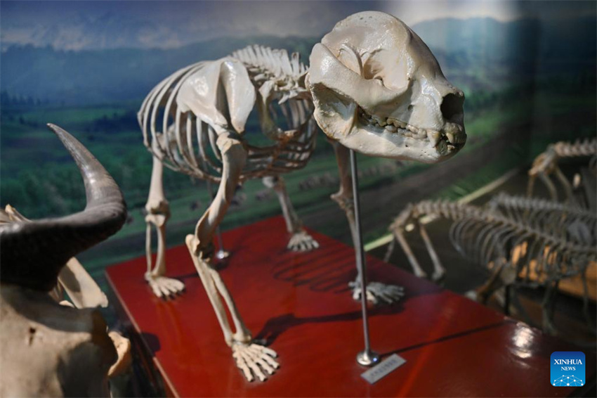 Un esqueleto de panda gigante en el Museo de Animales del Parque de Exposiciones de la Universidad Agrícola y Forestal del Noroeste, en Yangling, provincia de Shaanxi, el 26 de octubre de 2025. (Xinhua/Li Yibo).