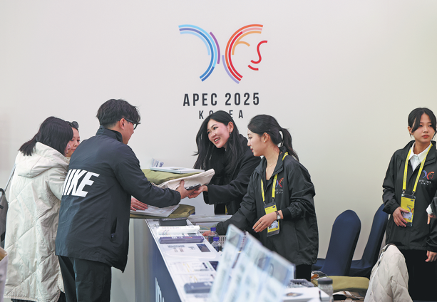 Personal del centro de prensa distribuye materiales a los periodistas el martes. FENG YONGBIN/ DIARIO DE CHINA