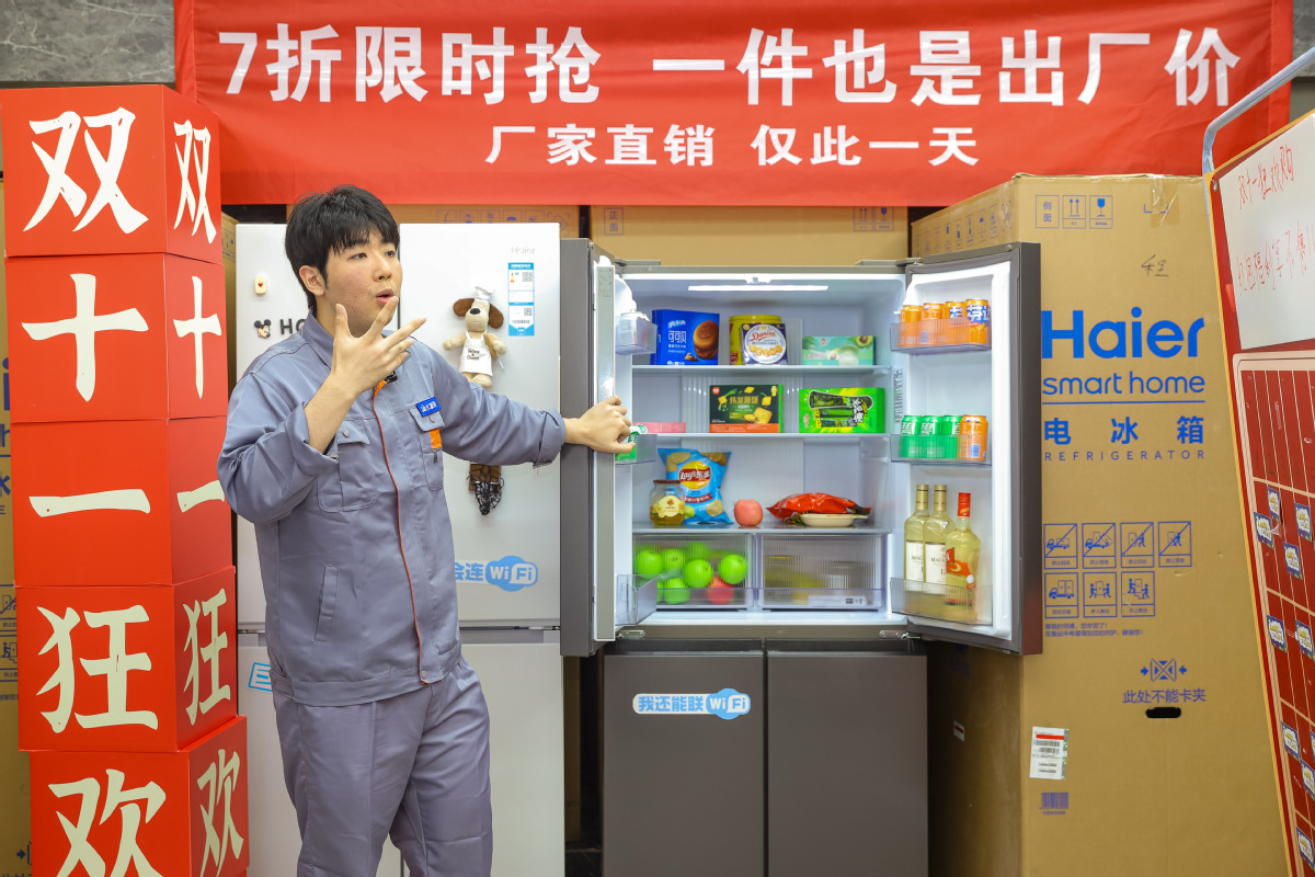 Un vendedor promociona en vivo refrigeradores en Qingdao, Shandong, el lunes. ZHANG YING/DIARIO DE CHINA