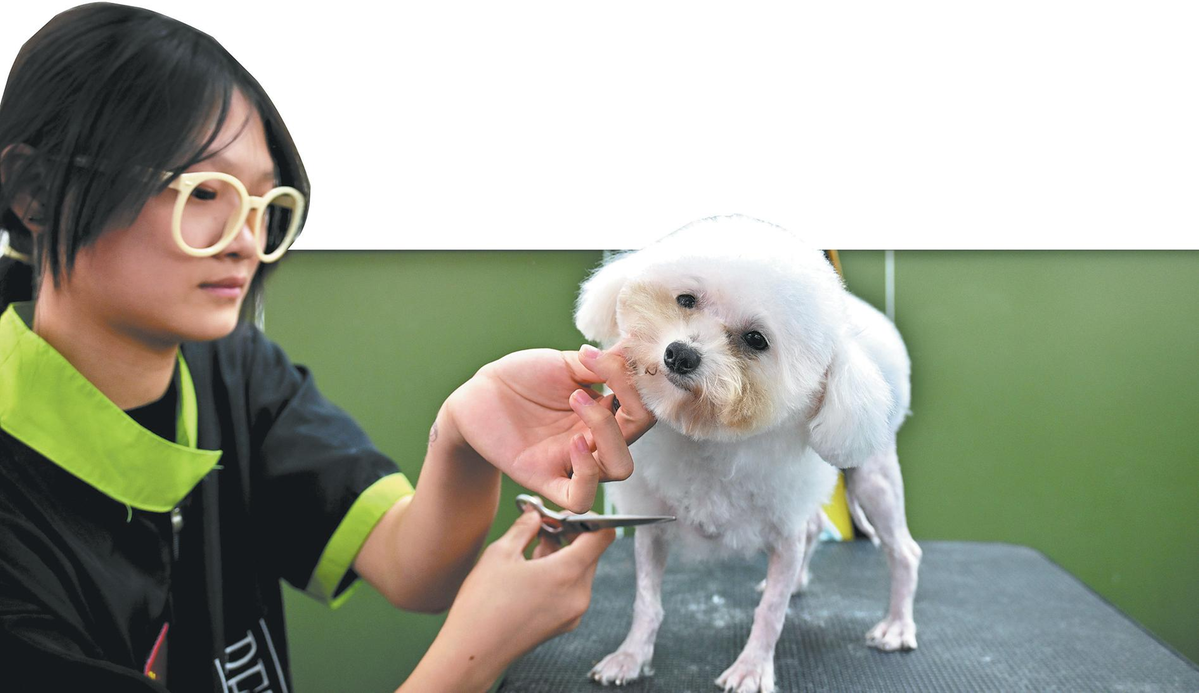 Una aprendiz practica el aseo de un perro en la Escuela de cuidados de mascotas Lele en Anshan, provincia de Liaoning, 23 de octubre. HUA YUHAN/DIARIO DE CHINA