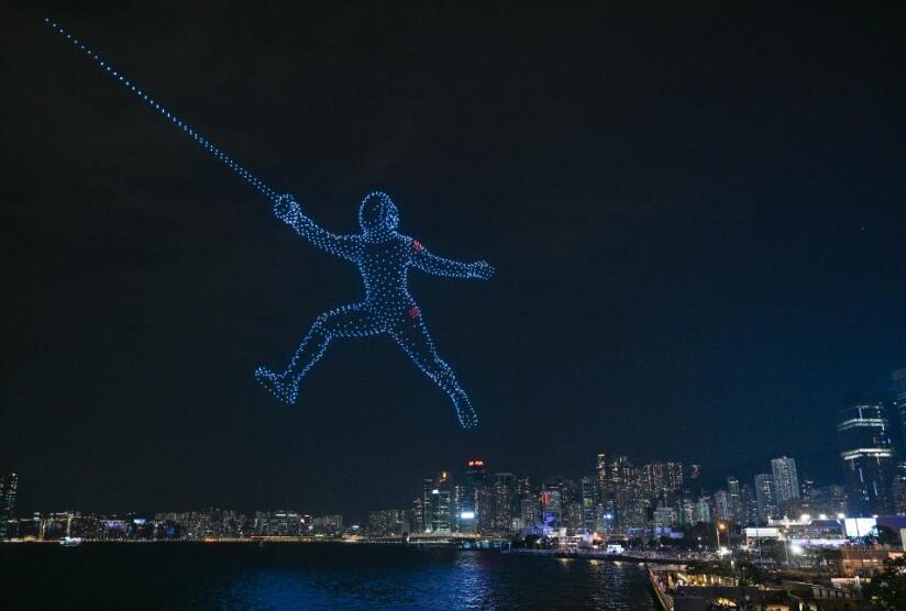 Un espectáculo de luces con drones que conmemora el espíritu deportivo se celebra en la Región Administrativa Especial de Hong Kong, en el sur de China, el 18 de noviembre de 2025. (Xinhua/Chen Duo).