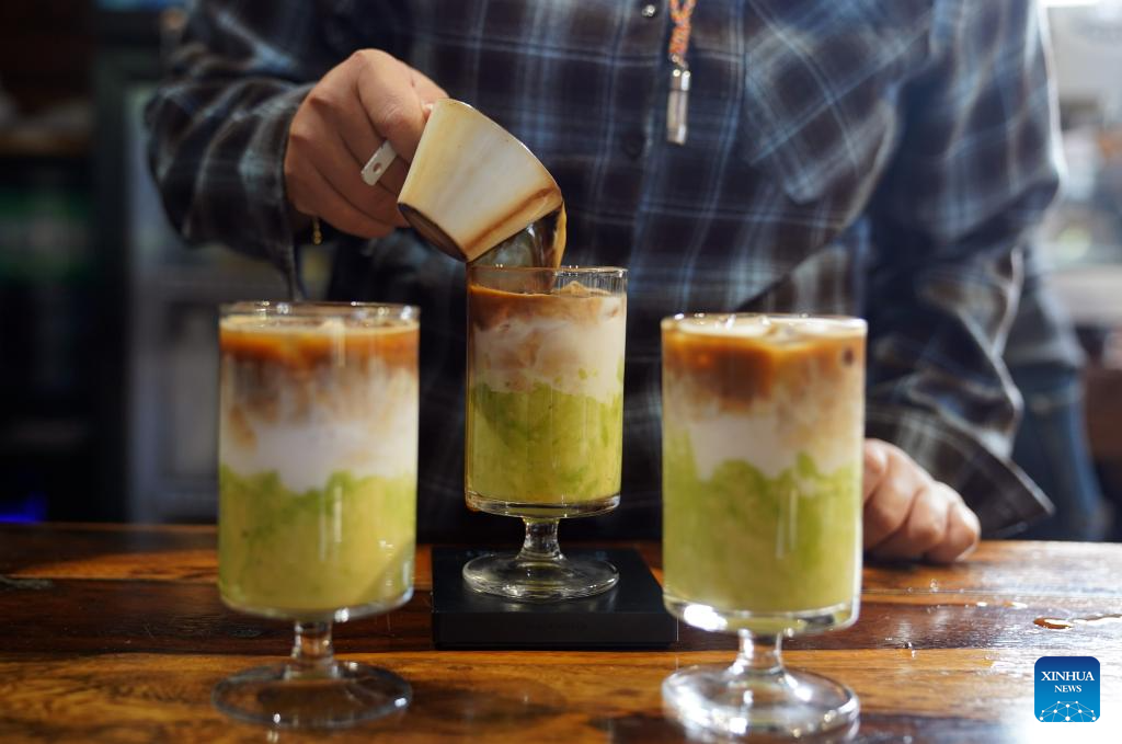 Un empleado prepara café con aguacate en una empresa cafetera del distrito de Menglian, ciudad de Pu'er, provincia de Yunnan, en el suroeste de China, el 17 de noviembre de 2025. (Foto de Liang Zhiqiang/Xinhua).