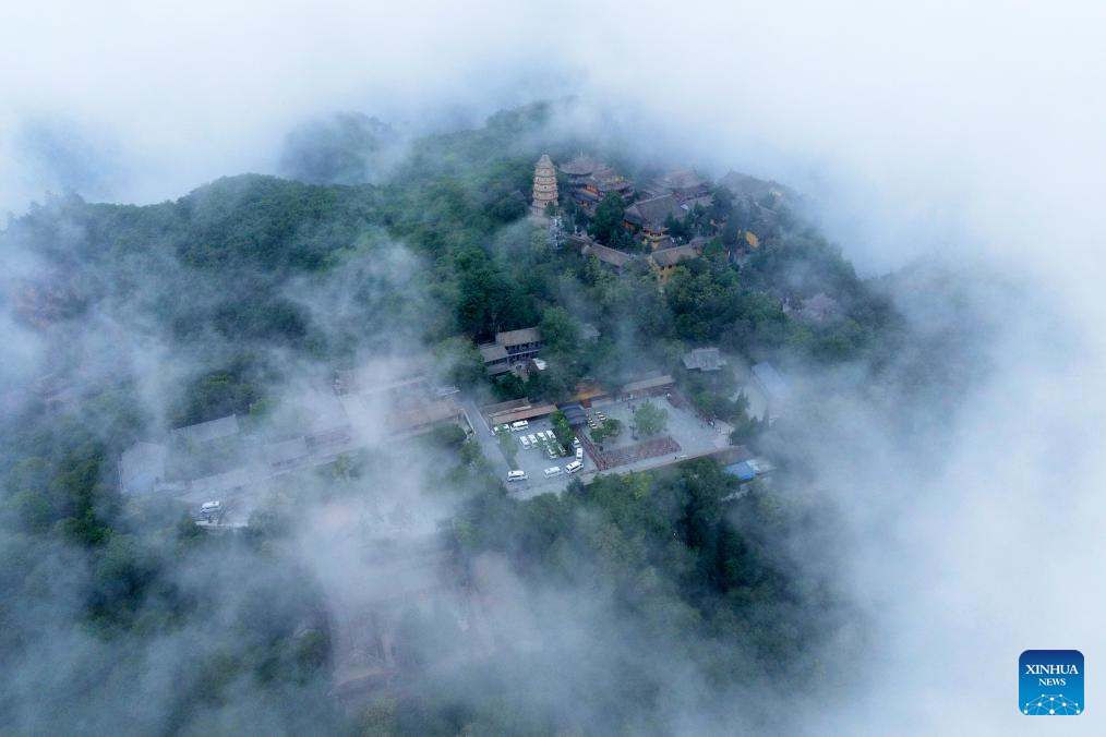 Una foto aérea tomada con un dron el 11 de julio de 2025 muestra la montaña Kongtong en la ciudad de Pingliang, provincia de Gansu, noroeste de China. (Wu Xihui/Xinhua)