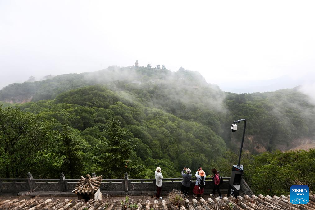 Visitantes en la montaña Kongtong en la ciudad de Pingliang, provincia de Gansu, noroeste de China, 11 de julio de 2025. (Wu Xihui/Xinhua)