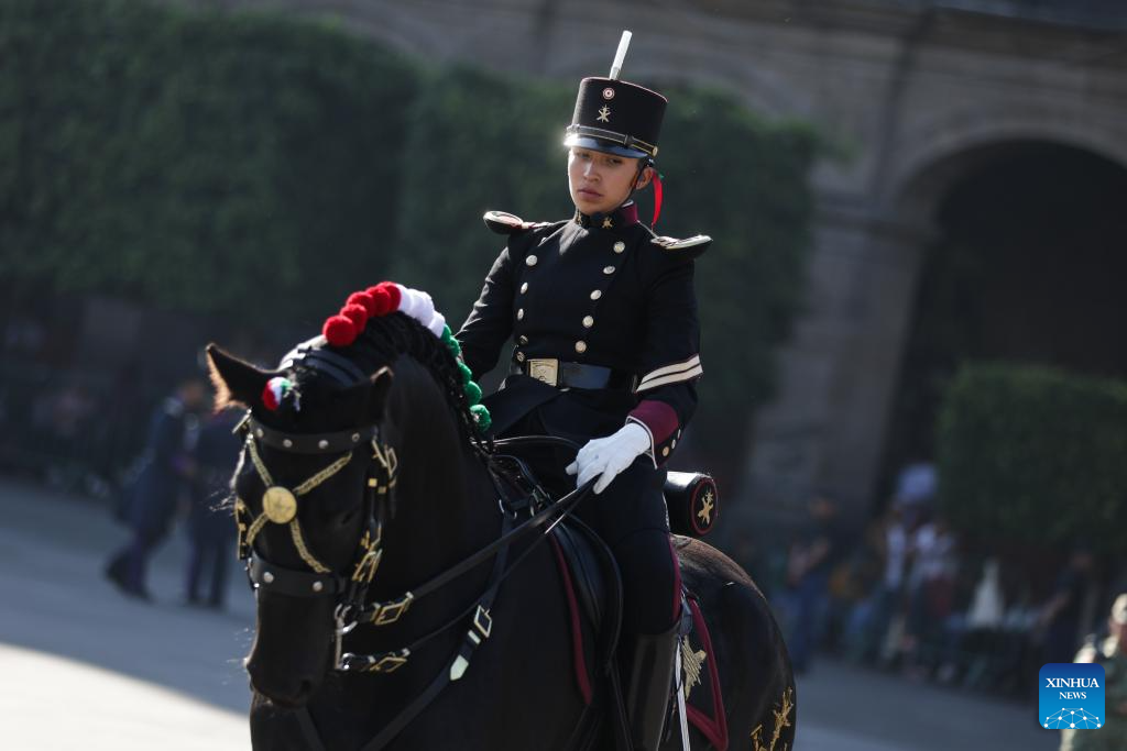 Una cadete del Heroico Colegio Militar participa en el Desfile Cívico Militar en conmemoración del 115 Aniversario del inicio de la Revolución Mexicana, en la Plaza de la Constitución, en la Ciudad de México, capital de México, el 20 de noviembre de 2025. La presidenta de México, Claudia Sheinbaum, destacó el jueves que la transformación histórica iniciada en el país en 1910, año de inicio de la Revolución Mexicana, sigue vigente en la defensa de la soberanía nacional, la justicia social y el rechazo a cualquier forma de injerencia extranjera. (Xinhua/Francisco Cañedo)