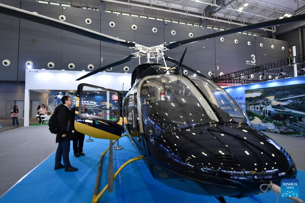Personas visitan una exhibición durante la Exposición Internacional de la Industria de la Aviación General y la Economía de Baja Altitud de Hunan 2025 en el Centro Internacional de Convenciones y Exposiciones de Changsha, en Changsha, en la provincia de Hunan, en el centro de China, el 21 de noviembre de 2025. La exposición consta de una exhibición estática en el Centro Internacional de Convenciones y Exposiciones de Changsha y un espectáculo aéreo en el Aeropuerto de Lusong de la ciudad de Zhuzhou, ambos en la provincia de Hunan, en el centro de China. (Xinhua/Chen Zhenhai)