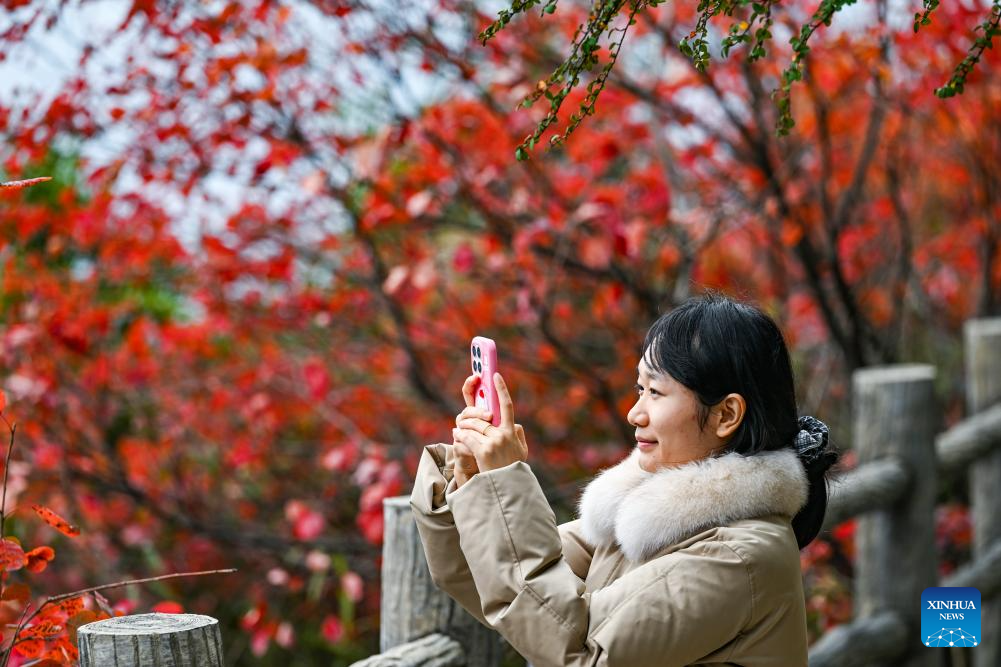 Una turista toma fotografías en un punto escénico cerca de la Garganta Wuxia, una de las Tres Gargantas del río Yangtze, en Wushan, Chongqing, en el suroeste de China, el 23 de noviembre de 2025. (Xinhua/Wang Quanchao)