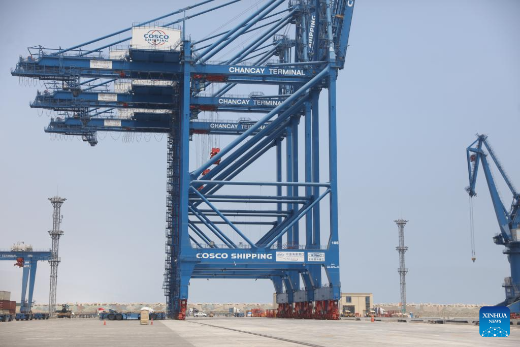 Imagen del 7 de octubre de 2025 del puerto de Chancay, en Chancay, Perú. El 62 por ciento de las agroexportaciones peruanas enviadas a China entre enero y septiembre de 2025 se movilizó a través del puerto de Chancay, ubicado a 80 km al norte de la ciudad de Lima, informó el miércoles el Ministerio de Comercio Exterior y Turismo de Perú. (Xinhua/Mariana Bazo)