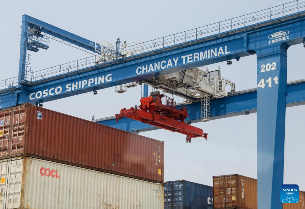 Imagen del 7 de octubre de 2025 del puerto de Chancay, en Chancay, Perú. El 62 por ciento de las agroexportaciones peruanas enviadas a China entre enero y septiembre de 2025 se movilizó a través del puerto de Chancay, ubicado a 80 km al norte de la ciudad de Lima, informó el miércoles el Ministerio de Comercio Exterior y Turismo de Perú. (Xinhua/Mariana Bazo)