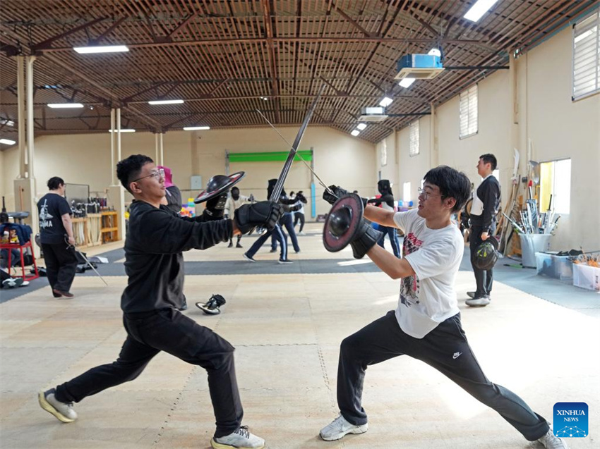 Miembros del club Shanghai Historical Martial Arts (SHMA) practican juntos en el SHMA en Shanghai, el 22 de noviembre de 2025. (Xinhua/Liu Ying).