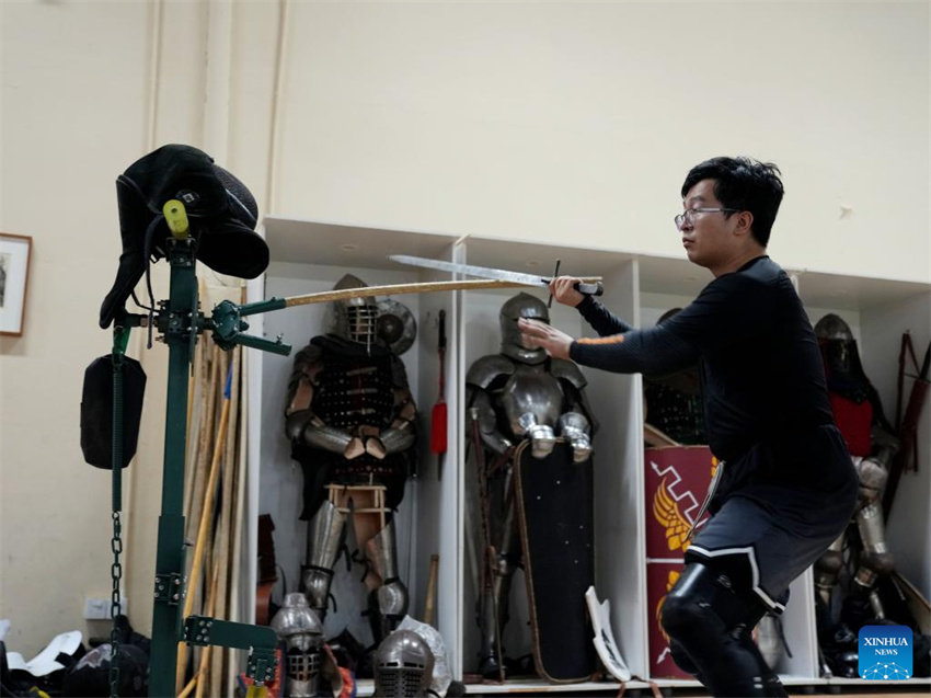 She Yuran practica con el equipo del club Shanghai Historical Martial Arts (SHMA) en Shanghai, el 22 de noviembre de 2025. (Xinhua/Liu Ying).