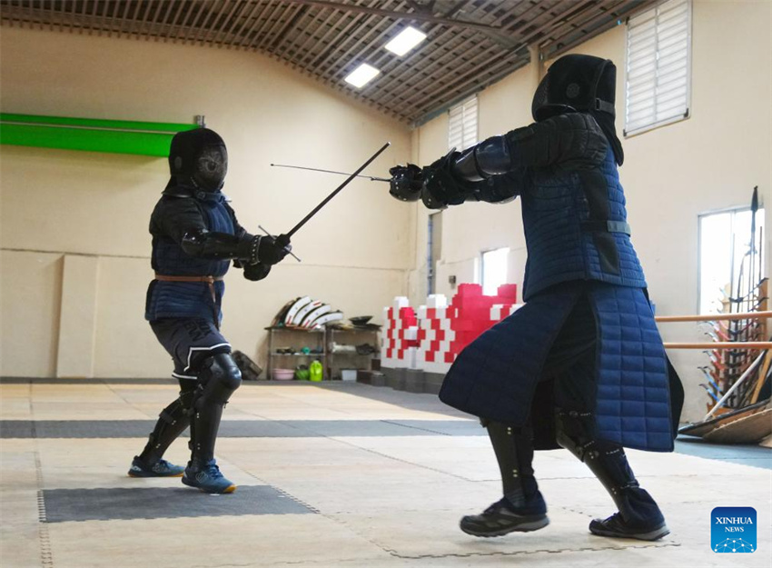 She Yuran practica con espadas largas junto a una amiga en el club Shanghai Historical Martial Arts (SHMA) en Shanghai, el 22 de noviembre de 2025. (Xinhua/Liu Ying).