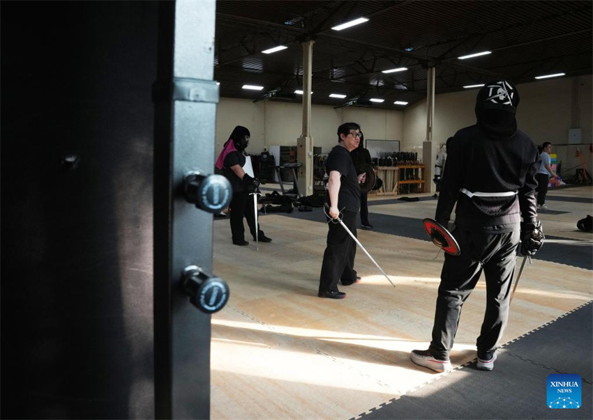 Esta foto muestra una escena de un curso de espada y escudo en el club Shanghai Historical Martial Arts (SHMA) de Shanghai, el 22 de noviembre de 2025. (Xinhua/Liu Ying).
