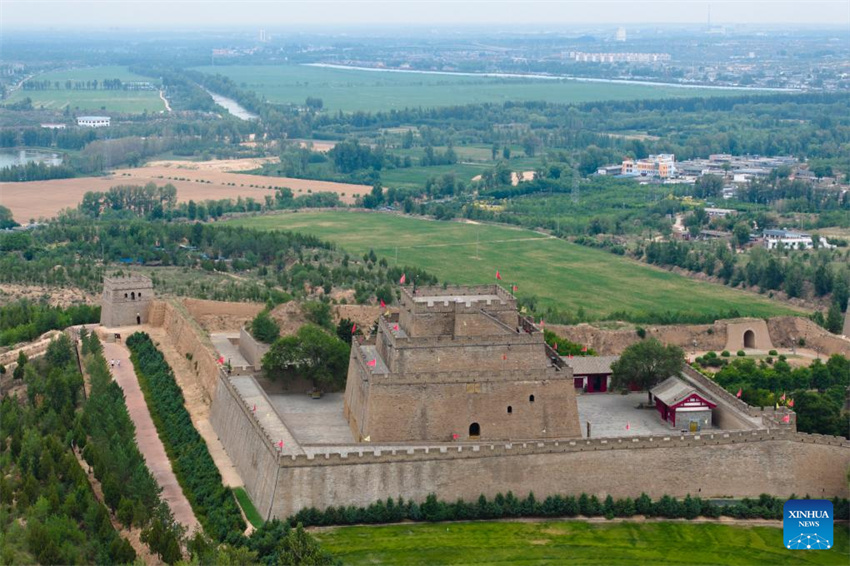Una foto aérea tomada con un dron el 6 de junio de 2024 muestra la torre de vigilancia «Zhenbeitai» en Yulin, provincia de Shaanxi, noroeste de China. (Xinhua/Shao Rui).
