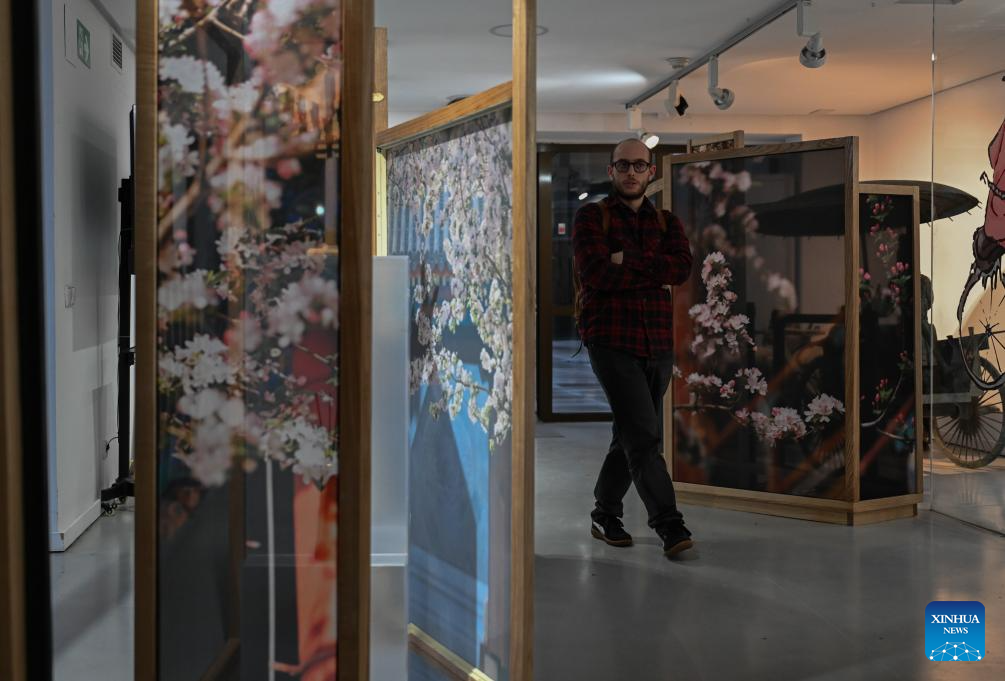 Un visitante observa las obras expuestas durante una exposición titulada "Anshan Cuijin - Una Exposición de la Estética de la Vida China" en el Centro Cultural de China en Madrid, España, el 16 de diciembre de 2025. (Xinhua/Cheng Min).