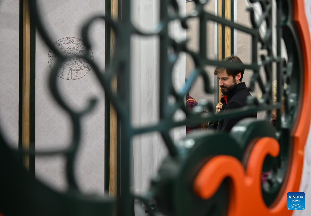 Un visitante observa las obras expuestas durante una exposición titulada "Anshan Cuijin - Una Exposición de la Estética de la Vida China" en el Centro Cultural de China en Madrid, España, el 16 de diciembre de 2025. (Xinhua/Cheng Min).