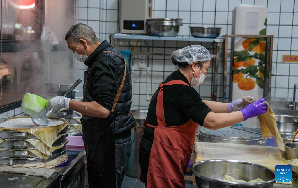 Imagen del 12 de diciembre de 2025 de chefs preparando fideos fríos en un restaurante, en la ciudad de Guangyuan, en la provincia de Sichuan, en el suroeste de China. Guangyuan, en el norte de la provincia de Sichuan, atravesada por el río Jialing y sus afluentes, cultiva una gastronomía única gracias a su agua pura. En sus calles y callejones, los tazones de fideos fríos recién cocidos al vapor y cortados atraen a personas de día y de noche. Gracias a sus ingredientes, los fideos fríos poseen un robusto sabor a arroz.(Xinhua/Huang Wei)