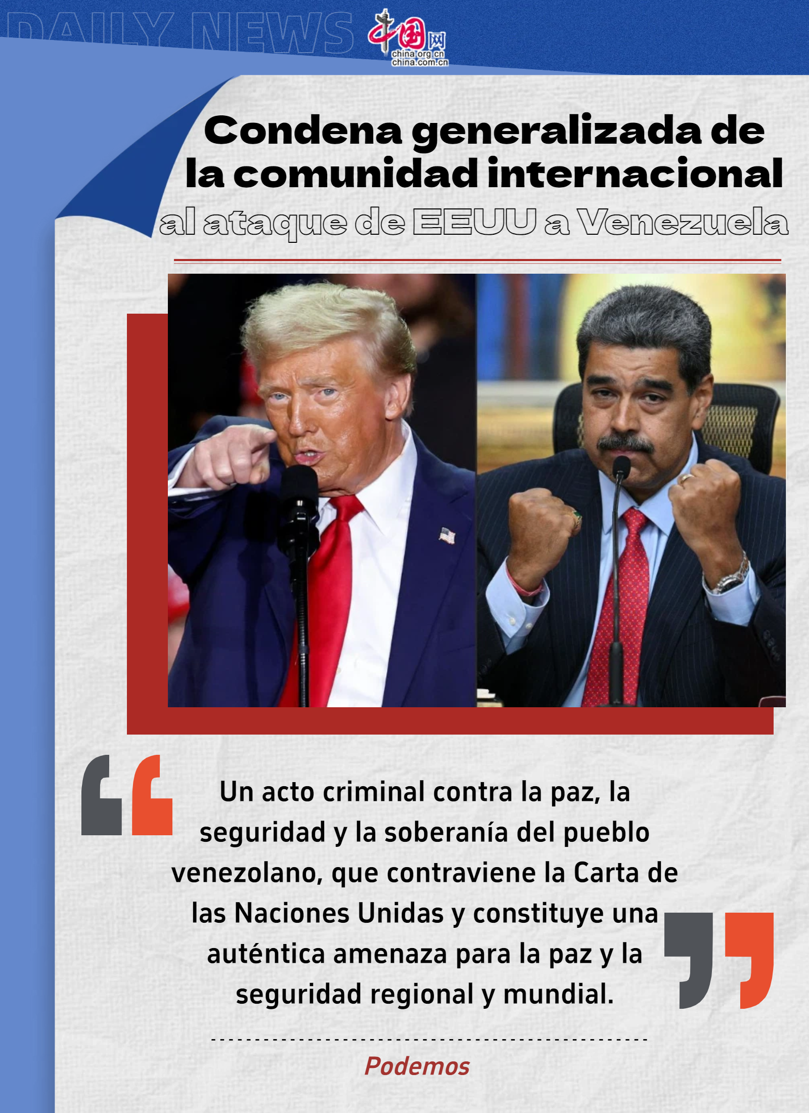 Póster: Condena generalizada de la comunidad internacional al ataque de EE.UU. a Venezuela