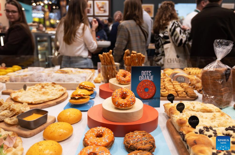 Alimentos son exhibidos en HORECAVA, en Amsterdam, Países Bajos, el 12 de enero de 2026. La HORECAVA anual, una feria comercial holandesa dedicada a la industria alimentaria, de bebidas y servicios, se celebra en Amsterdam del 12 al 15 de enero de 2026. (Xinhua/ Sylvia Lederer)