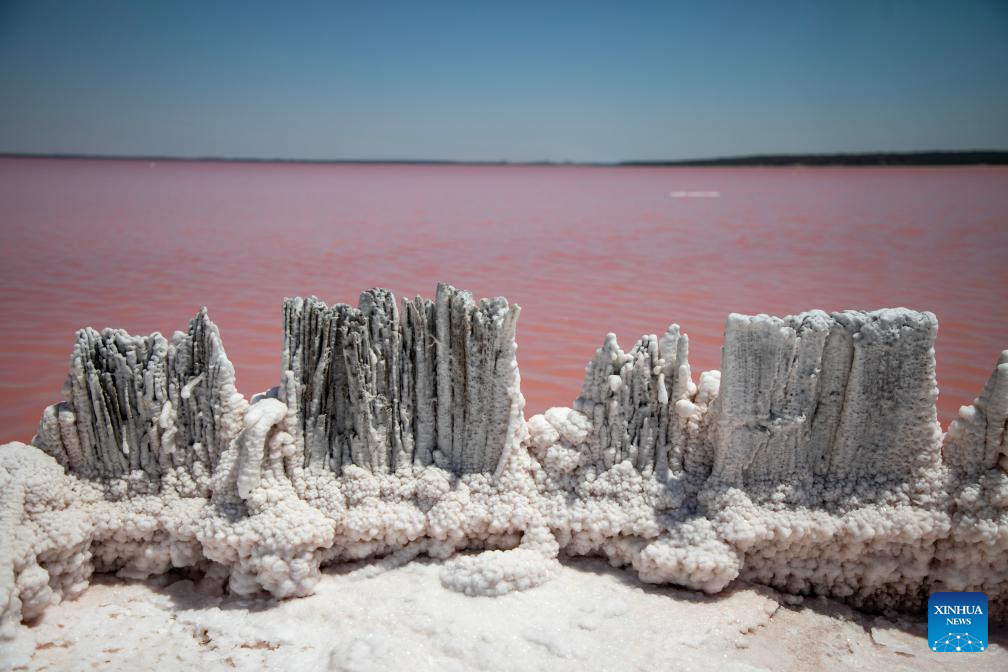 Imagen del 11 de enero de 2026 de trozos de madera cubiertos de sal en uno de los sectores de las Salinas Grandes de Hidalgo, en la localidad de Macachín, en la provincia de La Pampa, Argentina. (Xinhua/Martín Zabala)
