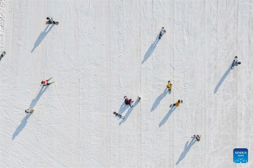 Una foto aérea tomada con un dron el 14 de diciembre de 2025 muestra a unas personas esquiando en una estación de esquí en Hohhot, en la región autónoma de Mongolia Interior, en el norte de China. Hohhot ha lanzado más de 300 programas de entretenimiento invernal desde diciembre de 2025, que incluyen deportes de hielo y nieve, experiencias culturales y consumo de moda para impulsar la economía local. (Xinhua/Li Zhipeng).