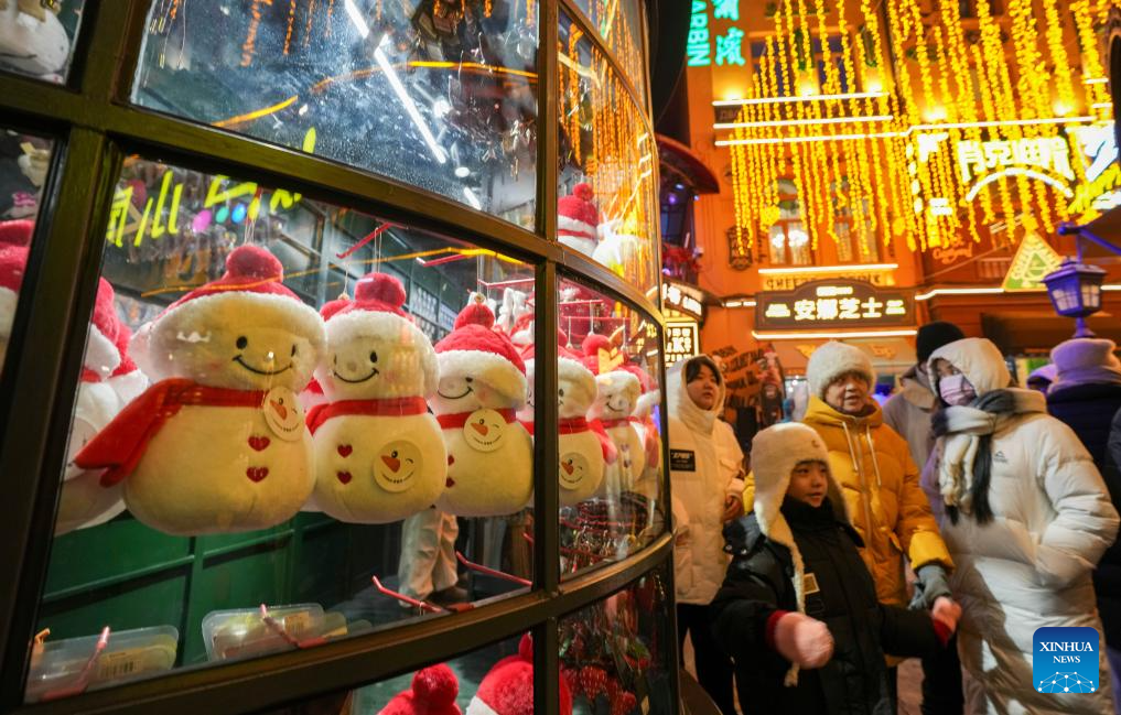 La gente se divierte en la calle Central de Harbin, provincia de Heilongjiang, en el noreste de China, el 11 de enero de 2026. (Xinhua/Wang Jianwei).