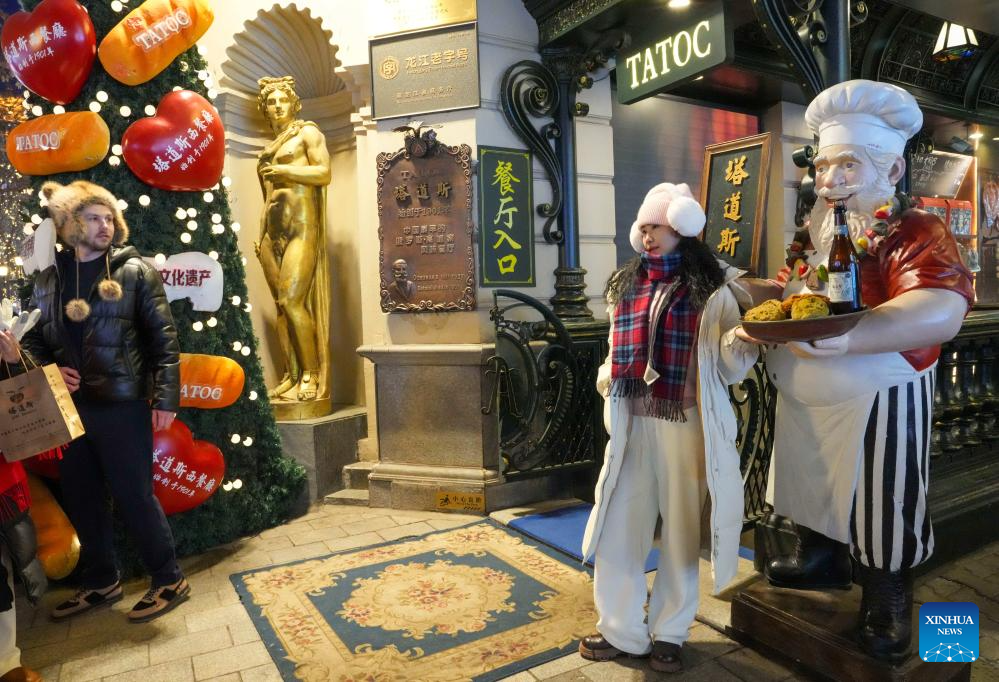 Una mujer posa para una foto en la calle Central de Harbin, provincia de Heilongjiang, noreste de China, el 8 de enero de 2026. (Xinhua/Wang Jianwei).