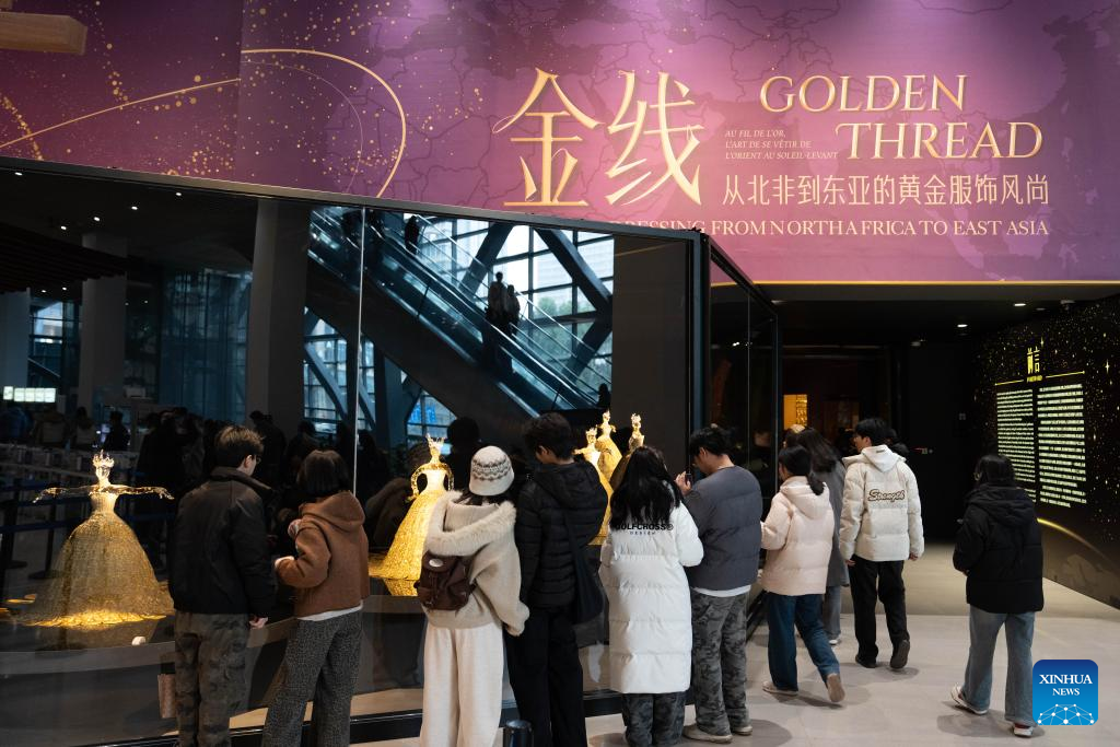 El público visita la exposición «Hilo de oro: el arte de vestir desde el norte de África hasta el este de Asia» en el Museo de Chengdu, en la provincia china de Sichuan, el 13 de enero de 2026. (Xinhua/Xu Bingjie).