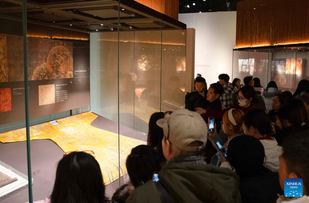 Exposición de piezas textiles con hilos de oro celebrada en el Museo de Chengdu
