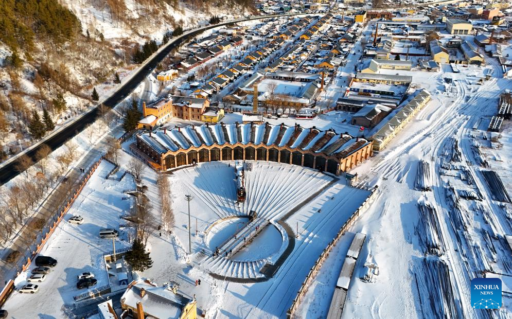 Vista aérea tomada con un dron del paisaje invernal del poblado de Hengdaohezi, en la ciudad de Hailin, en la provincia de Heilongjiang, en el noreste de China, el 15 de enero de 2025. Conocido como "un poblado tirado por trenes", Hengdaohezi se estableció originalmente a finales del siglo XIX cuando los rusos construyeron allí talleres de mantenimiento de trenes y otras instalaciones tras la construcción del Ferrocarril Oriental Chino. Gracias a sus edificios históricos bien conservados, este exótico poblado se ha convertido en un popular destino turístico. (Xinhua/Yang Zhe)