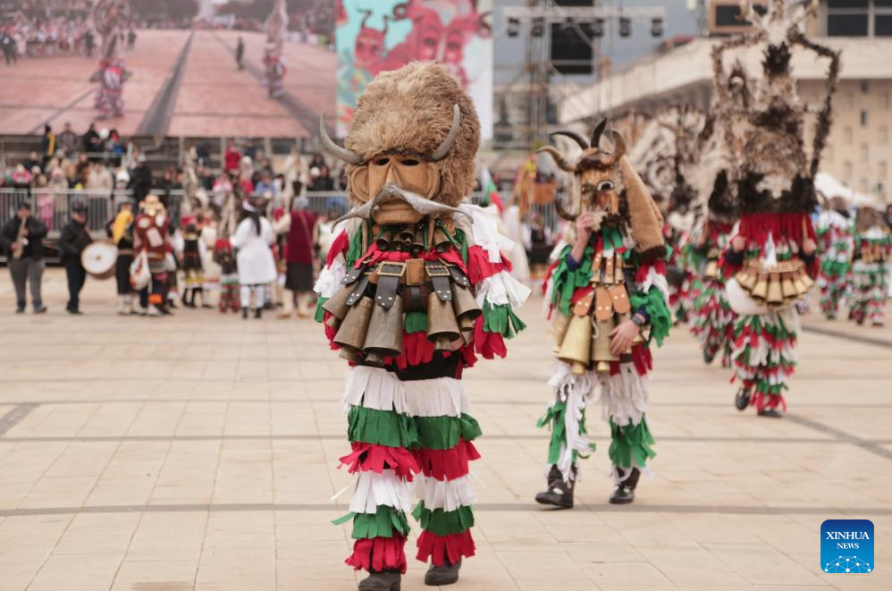 Imagen del 17 de enero de 2026 de artistas desfilando durante el Festival Internacional "Surva" de Juegos de Mascarada, celebrado en Pernik, Bulgaria. Más de 30 grupos de mascaradas de diversas partes de Bulgaria y otros países, como España, Italia y Croacia, ofrecerán al público un espectáculo visualmente impresionante y lleno de encanto cultural durante el festival, que se celebra del 16 al 25 de enero. (Xinhua/Yao Yulin)