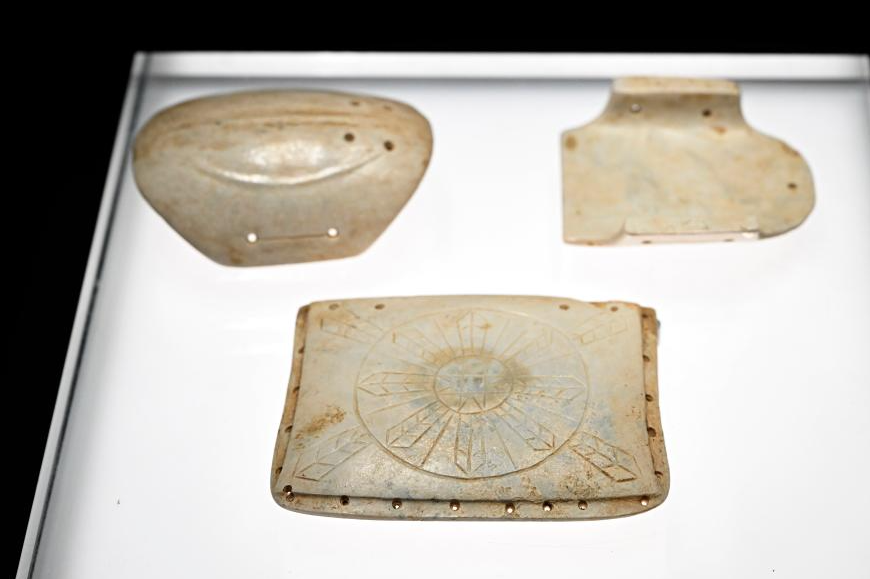 Artefactos de jade expuestos en el Museo del Yacimiento Lingjiatan, en Anhui, China
