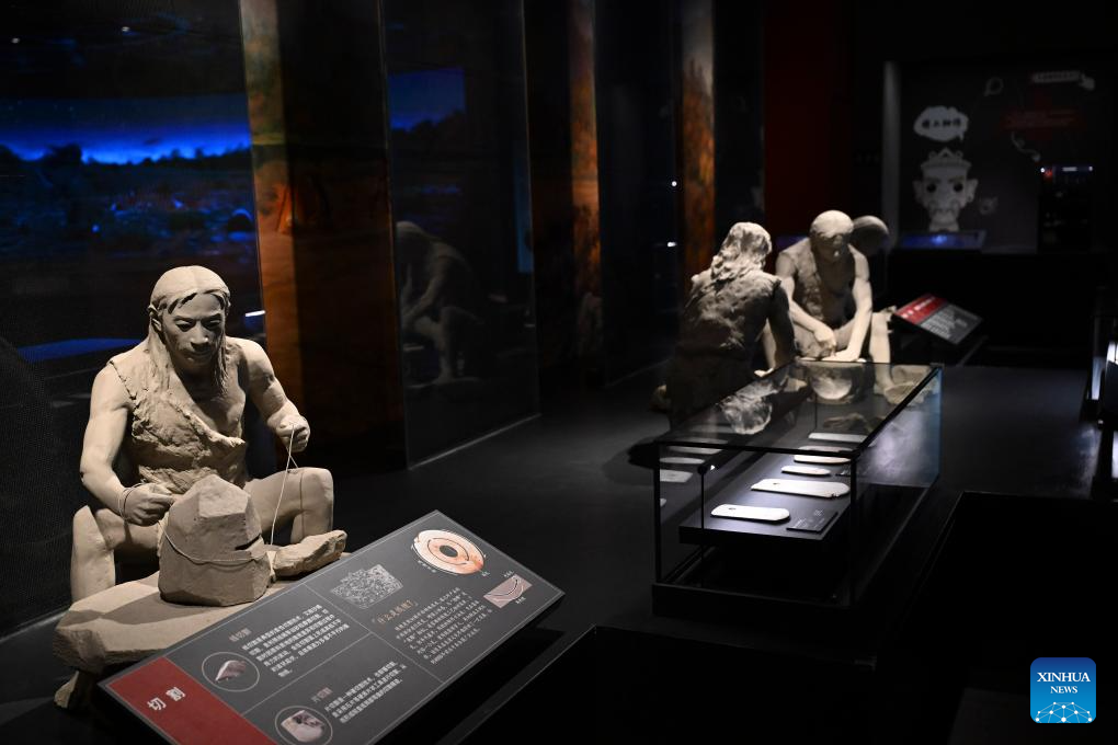Esta foto tomada el 24 de diciembre de 2025 muestra una escena reconstruida de los antiguos habitantes fabricando artefactos de jade en el Museo del Yacimiento Lingjiatan, en el distrito de Hanshan, Ma'anshan, provincia de Anhui, en el este de China. (Xinhua/Huang Bohan).