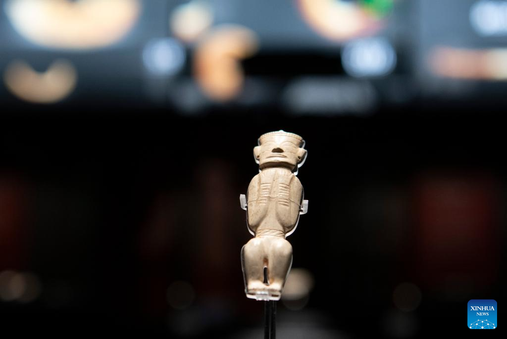 Esta foto, tomada el 16 de mayo de 2025, muestra una figurita de jade expuesta en el Museo del Yacimiento Lingjiatan, en el distrito de Hanshan, Ma'anshan, provincia de Anhui, en el este de China. (Xinhua/Zhang Duan).