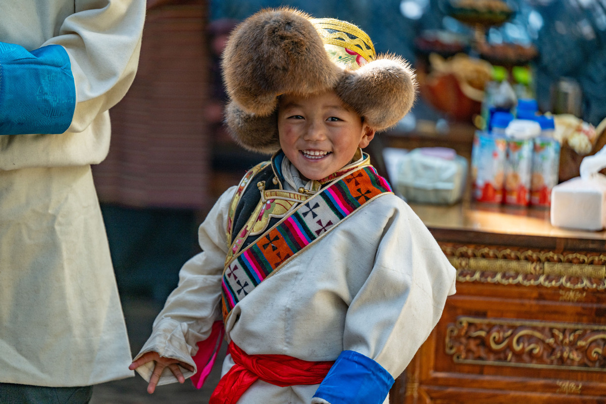 Un niño es fotografiado durante la celebración del Año Nuevo de los agricultores en la aldea de Chusong, municipio de Nyarixung, en Shigatse, región autónoma de Xizang, suroeste de China, el 20 de enero de 2026. [Foto/Xinhua].