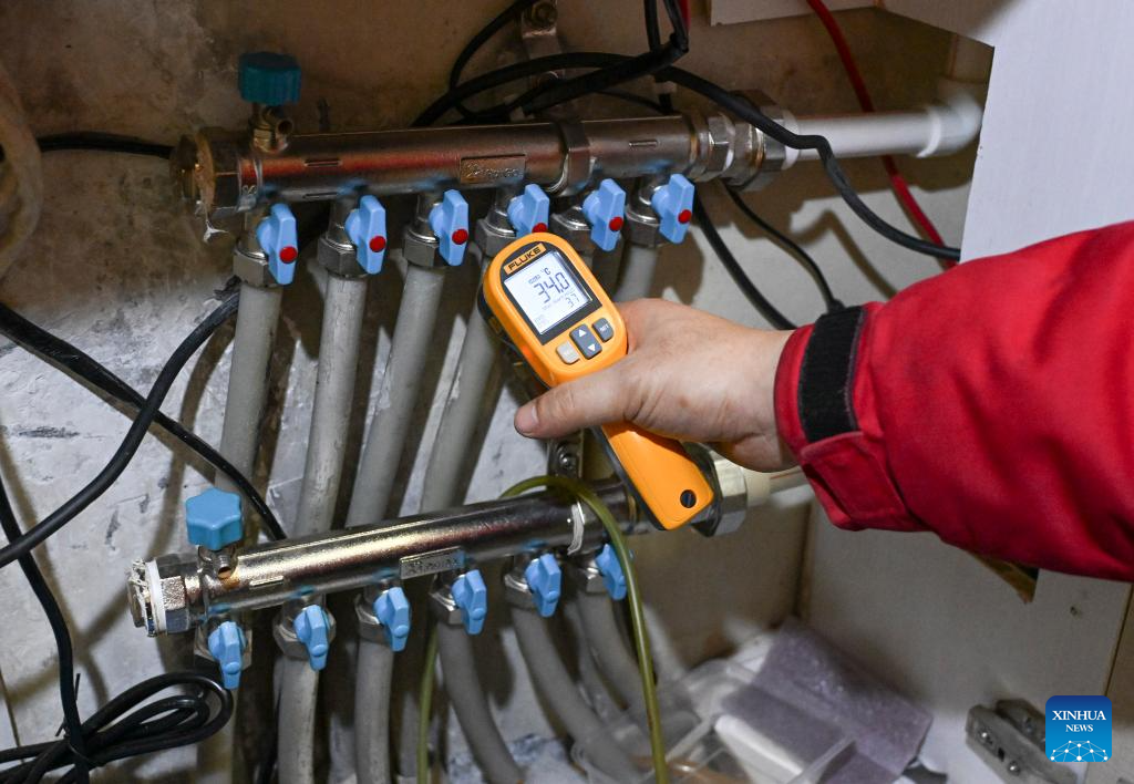 Un empleado comprueba el estado del sistema de calefacción en una residencia de Urumqi, región autónoma uigur de Xinjiang, en el noroeste de China, el 18 de enero de 2026. (Xinhua/Wang Fei).