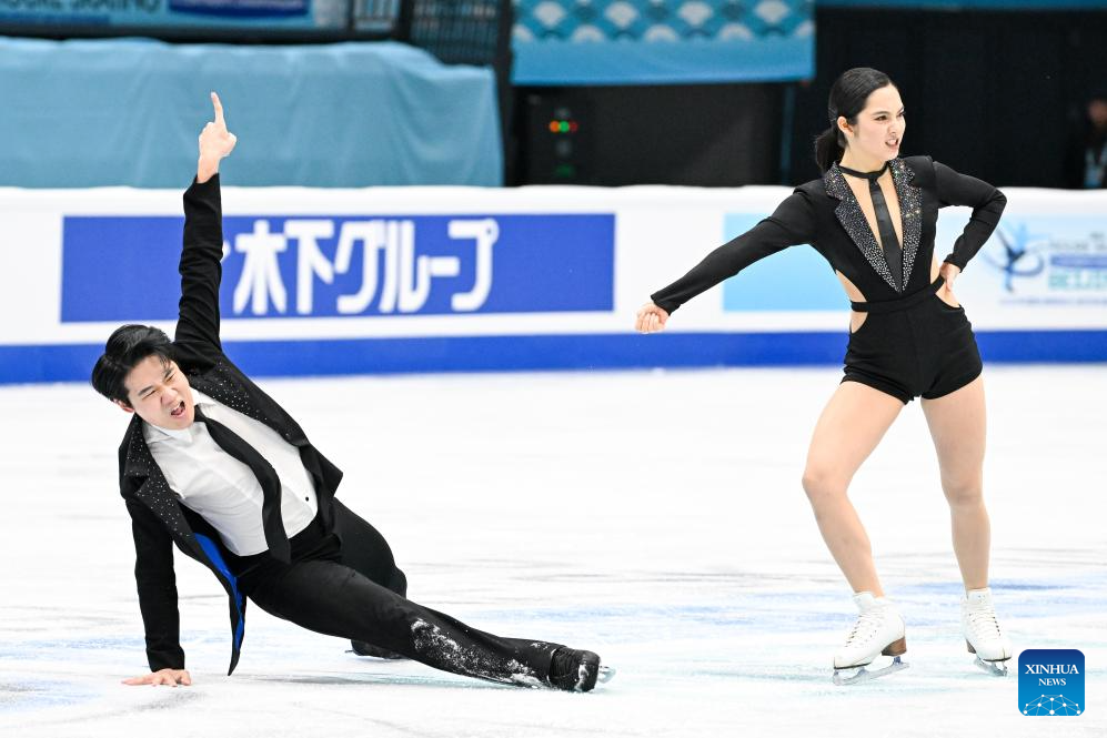 Lim Hannah (derecha) y Quan Ye, de Corea del Sur, actúan durante la danza rítmica sobre hielo en el Campeonato de Patinaje Artístico de los Cuatro Continentes de la ISU en Beijing, China, el 22 de enero de 2026. (Xinhua/Ju Huanzong).