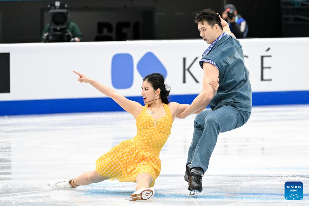 Wang Shiyue (izquierda) y Liu Xinyu, de China, actúan durante la danza rítmica sobre hielo en el Campeonato de Patinaje Artístico de los Cuatro Continentes de la ISU en Beijing, China, el 22 de enero de 2026. (Xinhua/Ju Huanzong).