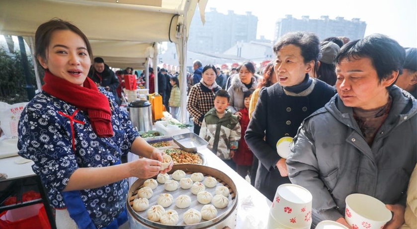 Una vendedora prepara bollos de tofu de Jiande en un evento temático para promover la cultura y el turismo de la ciudad de Jiande, en Hangzhou, provincia de Zhejiang, en el este de China, el 24 de enero de 2026. Emprendedoras de 16 pueblos y subdistritos de Jiande llevaron al público una variedad de delicias artesanales y productos agrícolas locales, como bollos de tofu, huevos, fresas, semillas de loto, té y pescado seco.