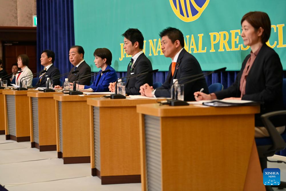 La primera ministra japonesa, Sanae Takaichi (4-d), asiste a un debate de líderes del partido, en Tokio, Japón, el 26 de enero de 2026. La primera ministra japonesa, Sanae Takaichi, afirmó el lunes que renunciará de inmediato a su cargo si el bloque gobernante no puede asegurar una mayoría en las próximas elecciones a la Cámara de Representantes. Takaichi, quien asume la presidencia del oficialista Partido Liberal Democrático (PLD), realizó estas declaraciones durante un debate de los dirigentes de la formación el lunes. (Xinhua/David Mareuil/Pool)