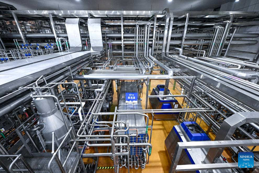 Esta foto, tomada el 27 de enero de 2026, muestra una línea de producción de esterilización instantánea a temperatura ultraalta en un taller de Yili en Wuzhong, región autónoma de la etnia Hui de Ningxia, en el noroeste de China. En los últimos años, la ciudad de Wuzhong ha mejorado significativamente la escala, la estandarización y la intensificación de su industria láctea. El parque industrial Jinji, en Wuzhong, ha atraído a un grupo de empresas lácteas de renombre, con una capacidad diaria de procesamiento de leche cruda fresca que alcanza las 6400 toneladas, lo que representa más del 53 % de la capacidad total de procesamiento de Ningxia. (Xinhua/Feng Kaihua).