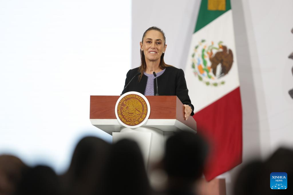 La presidenta mexicana, Claudia Sheinbaum, habla durante su conferencia de prensa matutina, en Palacio Nacional, en la Ciudad de México, capital de México, el 29 de enero de 2026. Sheinbaum dio a conocer el jueves que mantuvo una llamada telefónica con su par de Estados Unidos, Donald Trump, en la que abordaron temas comerciales y relevantes de la relación entre ambas naciones. (Xinhua/Francisco Cañedo)