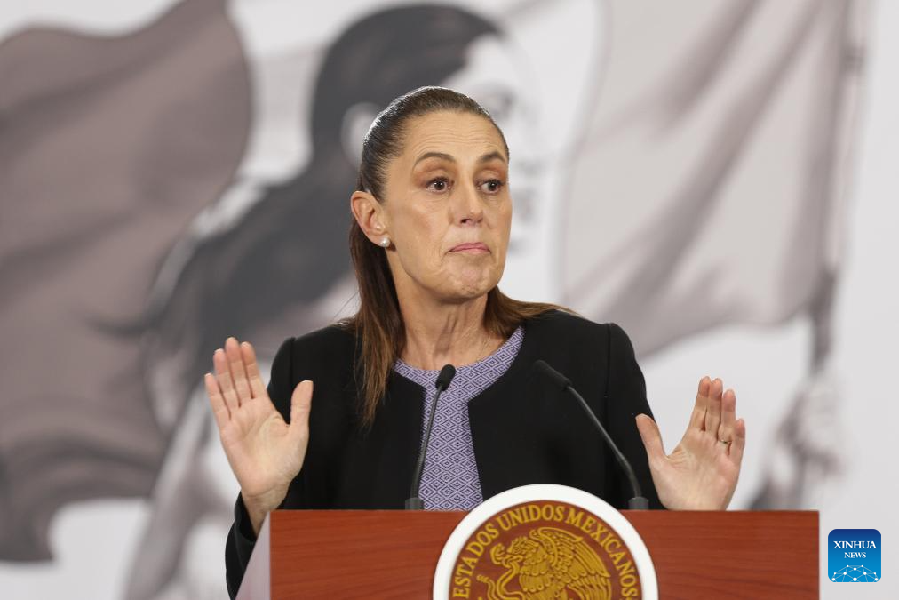 La presidenta mexicana, Claudia Sheinbaum, habla durante su conferencia de prensa matutina, en Palacio Nacional, en la Ciudad de México, capital de México, el 29 de enero de 2026. Sheinbaum dio a conocer el jueves que mantuvo una llamada telefónica con su par de Estados Unidos, Donald Trump, en la que abordaron temas comerciales y relevantes de la relación entre ambas naciones. (Xinhua/Francisco Cañedo)