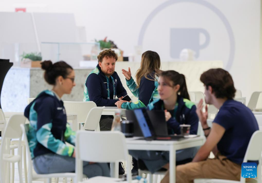 Imagen del 28 de enero de 2026 de personas conversando en el centro principal de medios de comunicación de los Juegos Olímpicos de Invierno Milán-Cortina 2026, en Milán, Italia. (Xinhua/Du Xiaoyi)