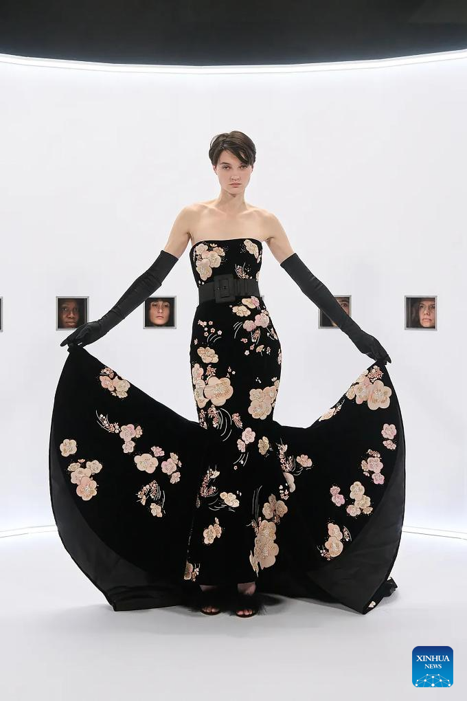 Una modelo presenta una creación de Alessandro Michele para Valentino durante la Semana de la Alta Costura Primavera/Verano 2026, en París, Francia, el 28 de enero de 2026. (Xinhua/MeetEurope)