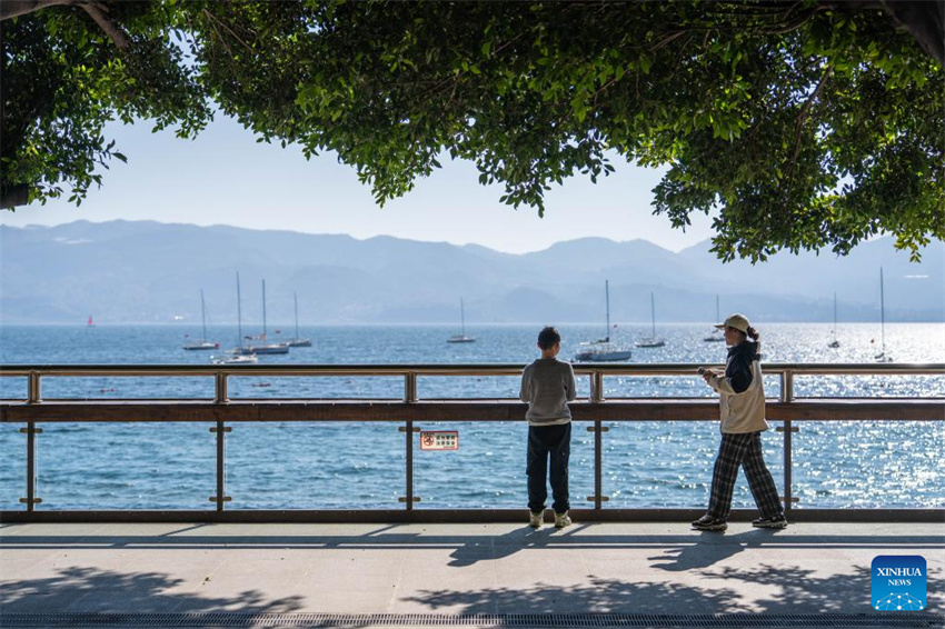 Turistas visitan el lago Fuxian en la ciudad de Yuxi, provincia de Yunnan, suroeste de China, el 27 de enero de 2026. (Xinhua/Gao Yongwei).